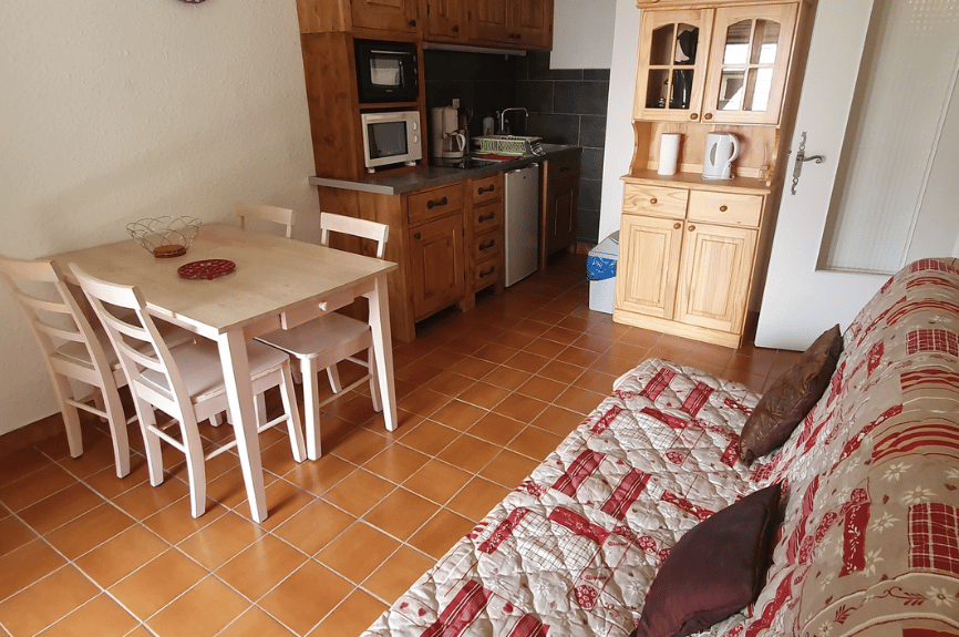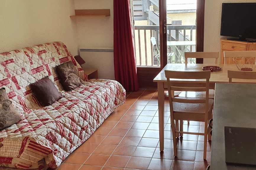 Appartement situé au deuxième étage d'une petite résidence de montagne, composé d'une pièce de vie avec cuisine équipée et salon, 1 chambre séparée avec 2 lits en 90 x 190, 1 salle de bain avec baignoire et 1 WC séparé, fenêtres et balcon situés exposition Est pour un petit déjeuner ensoleillé.
